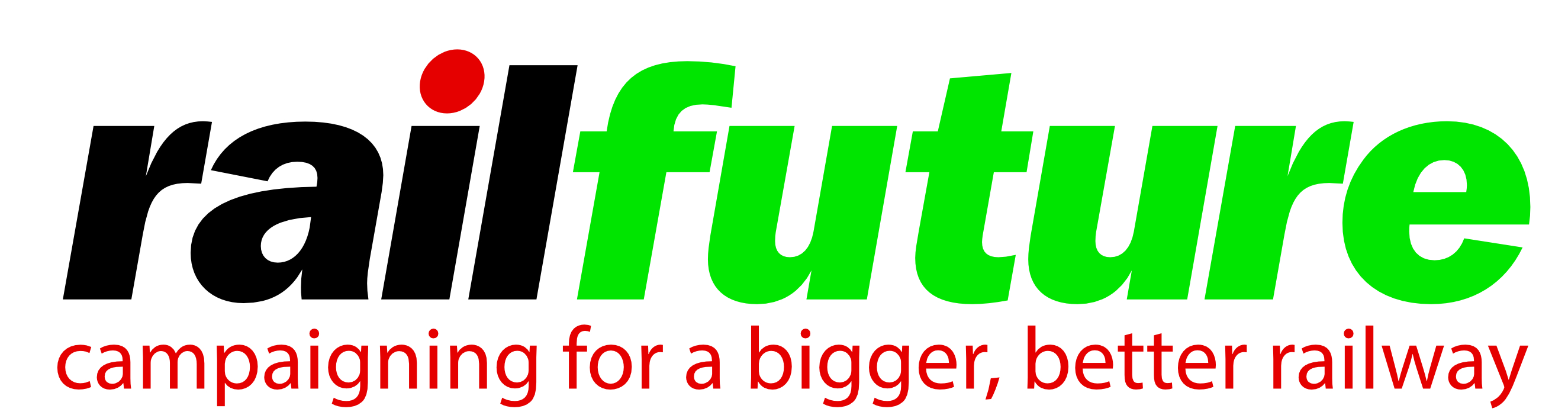 This is the Railfuture logo with campaigning for a bigger better railway strapline