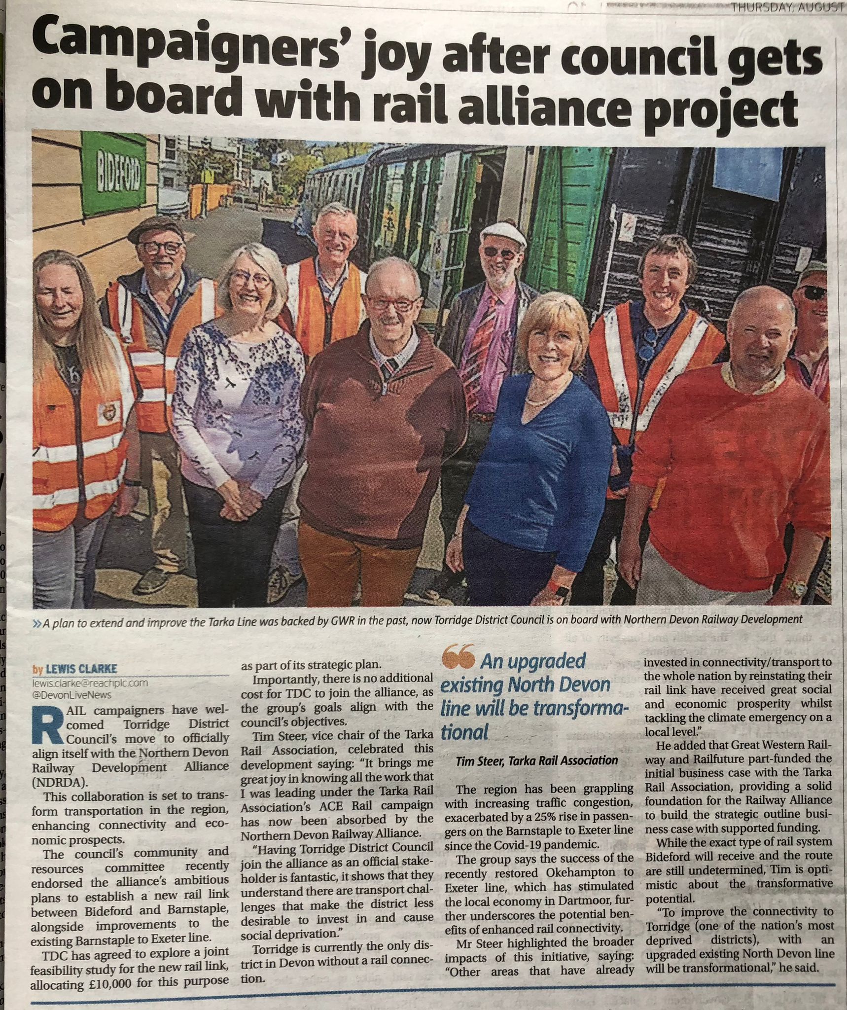 15/08/2024 - "Campaigners' joy after council gets on board with rail alliance project" - North Devon Journal full story (802kB)