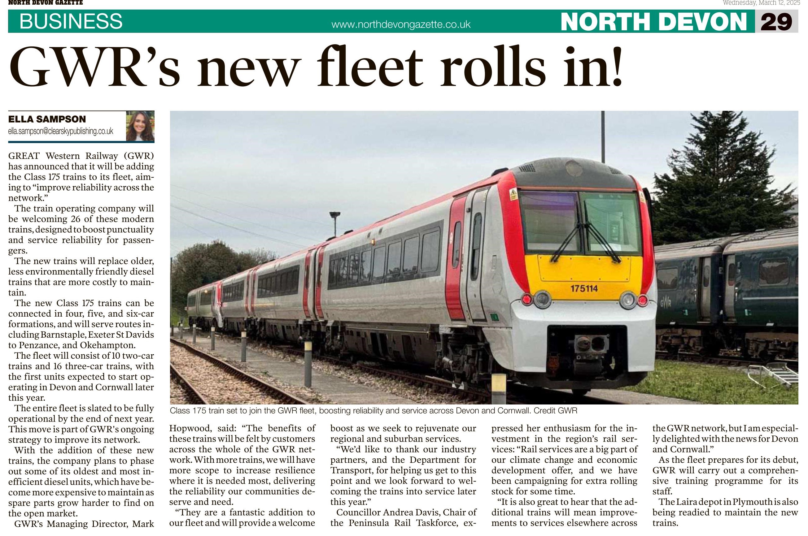12/03/2025 - "GWR's new fleet rolls in!" - North Devon Gazette (1002kB)