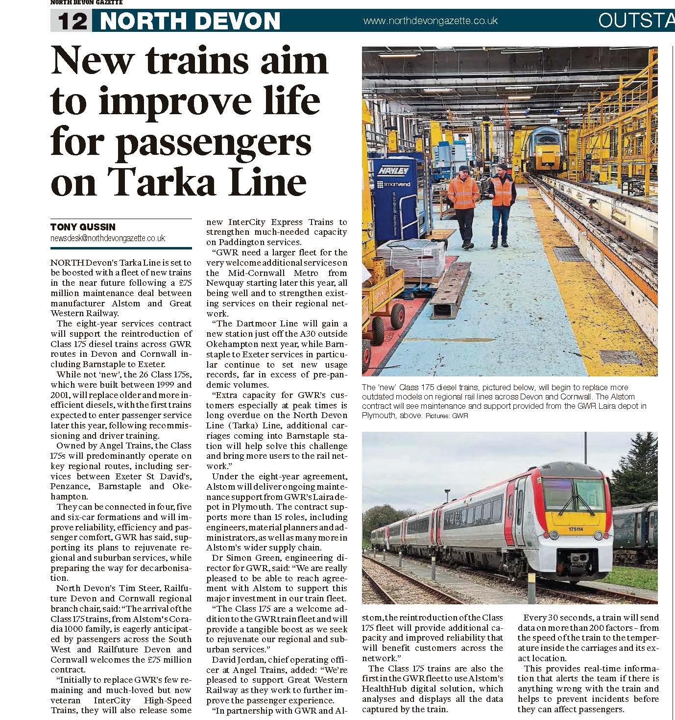 10/09/2025 - "New trains aim to improve life for passengers on Tarka Line" - North Devon Gazette (764kB)