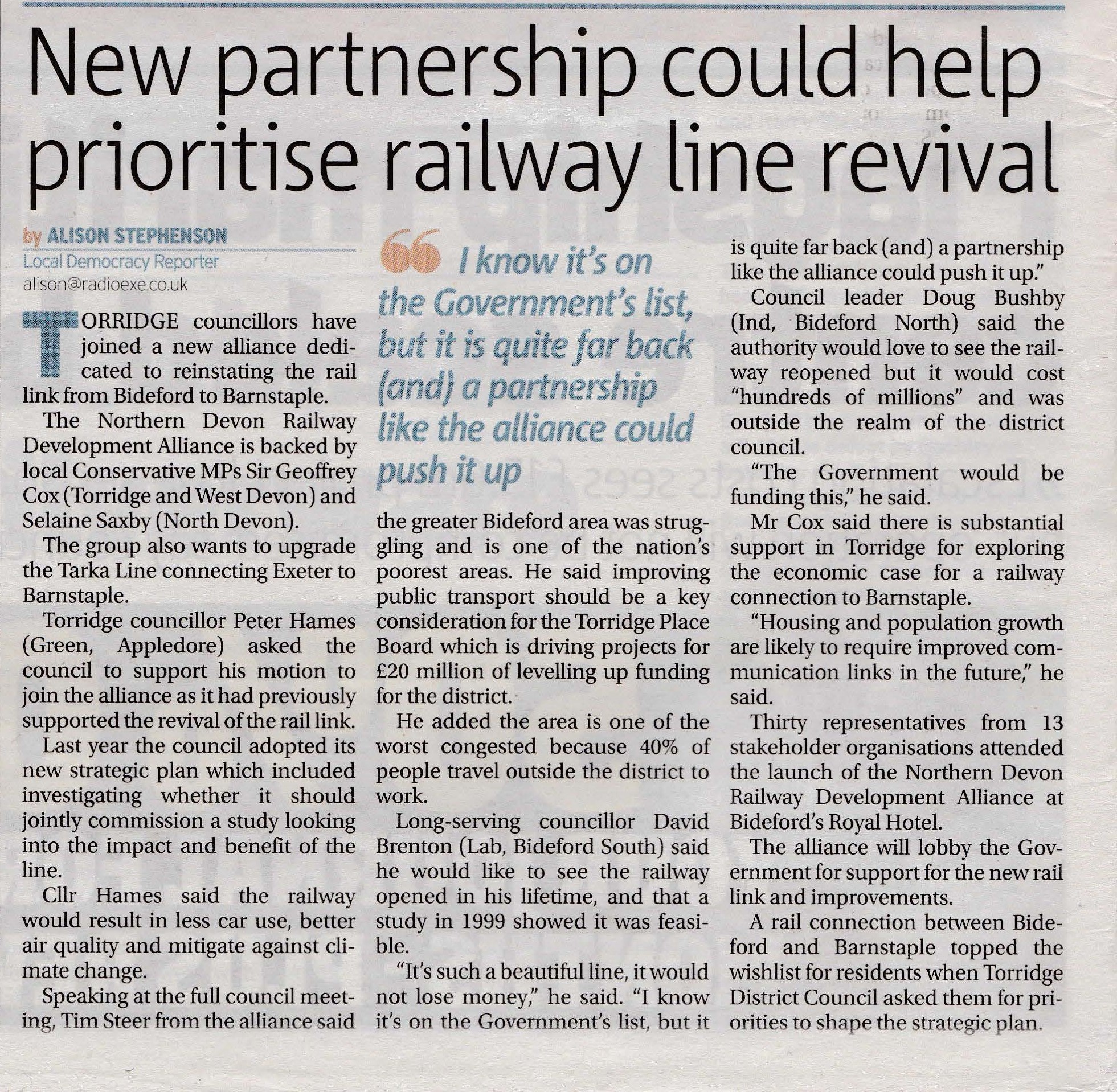 25/07/2024 - "Torridge District Council joins push for North Devon Rail Link" - North Devon Gazette (423kB)