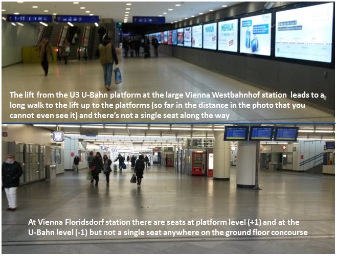 26/03/2016 - Some key Vienna stations have very few seats offering no opportunity to rest when interchanging (73kB)