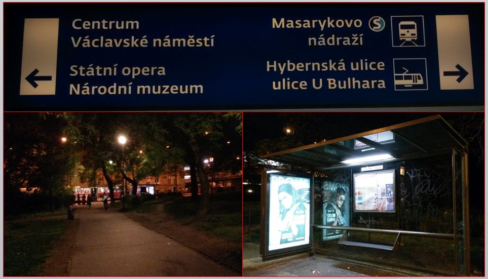 13/05/2016 - Prague main station is entered via a park and has no signs to direct travellers to the tram stop (91kB)