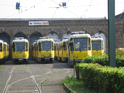 02/07/2016 - Berlin old eastern bloc Tatra trams standing at Pankow depot (87kB)