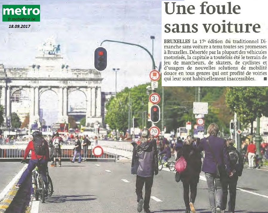 Brussels Annual Car-Free Sunday covered on front page of the free Metro newspaper (259kB)