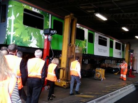 27/08/2015 - Vivarail D-Train lifted up by jacks in the depot (36kB)- Scotland