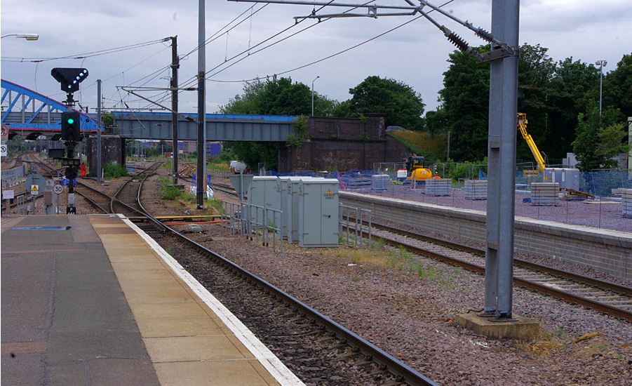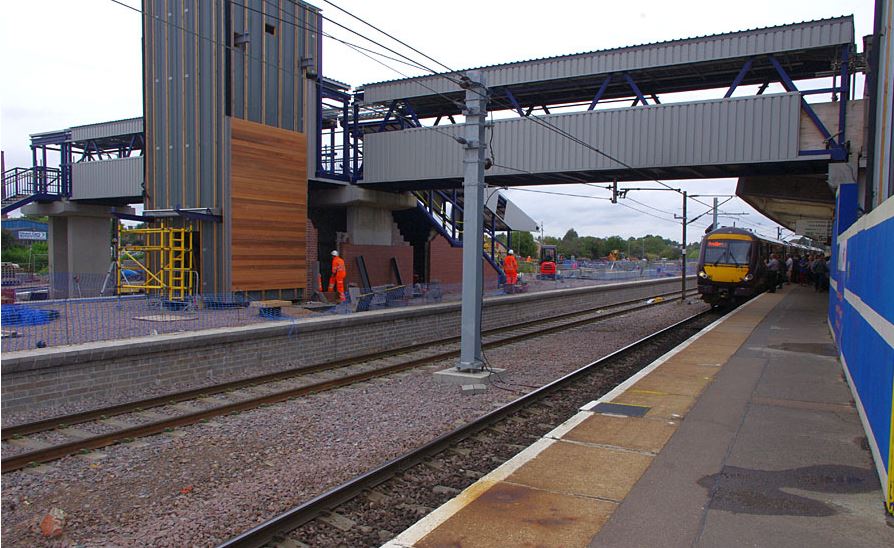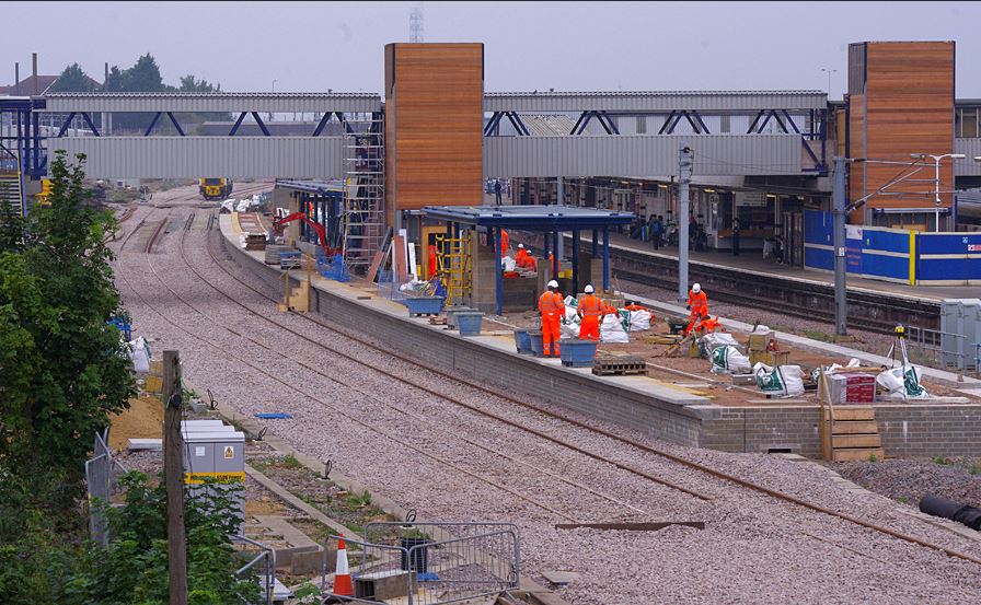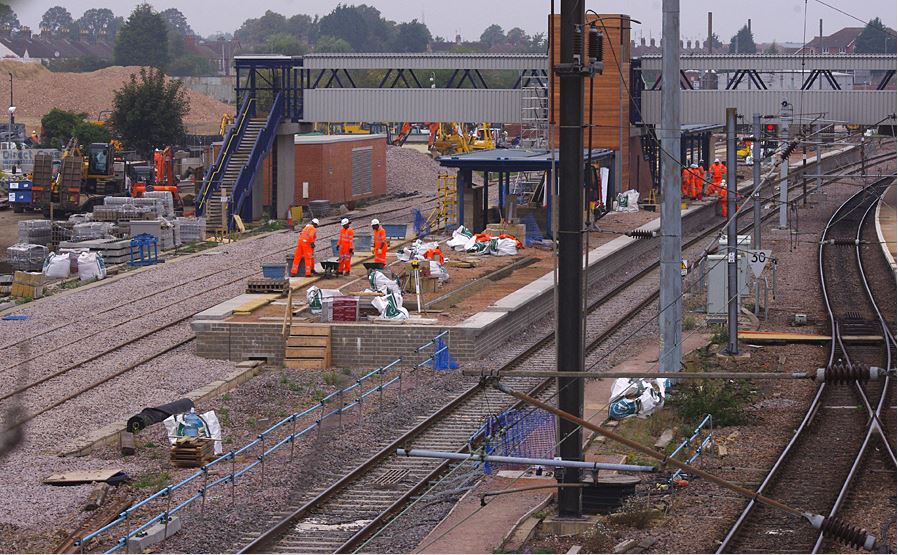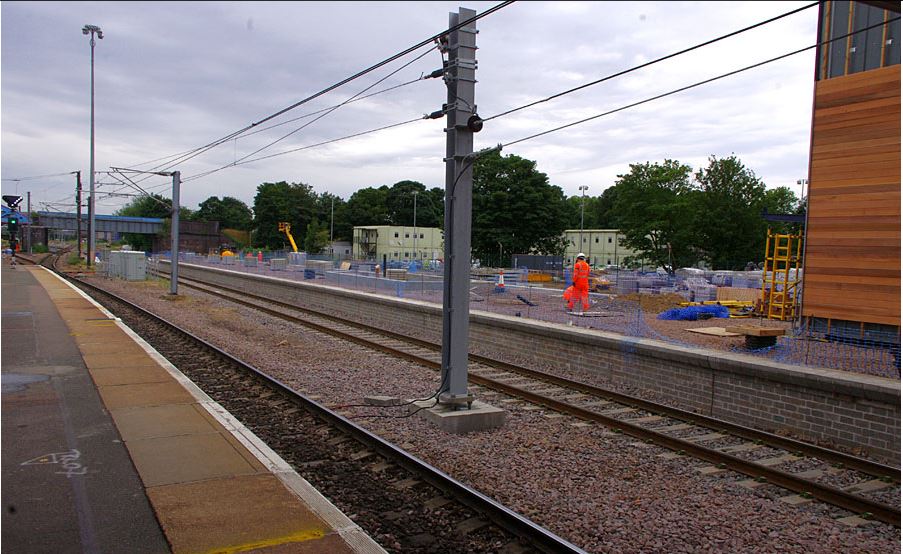 By mid-September the new island platform on the west side of the station was at an advanced stage of construction along with an extension to the exiting footbridge to serve the new platform with lift and stairs down to platform level.