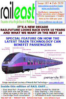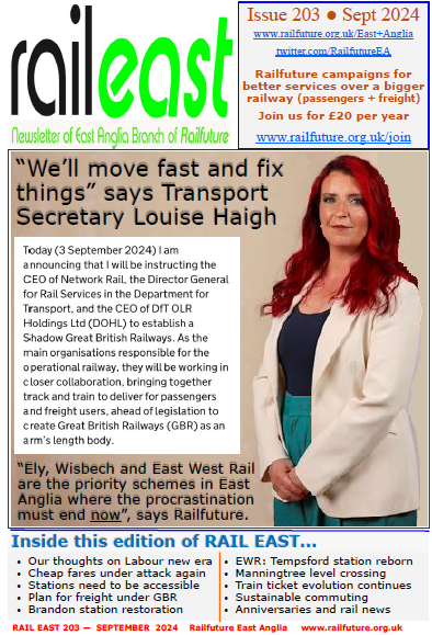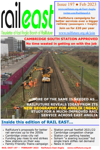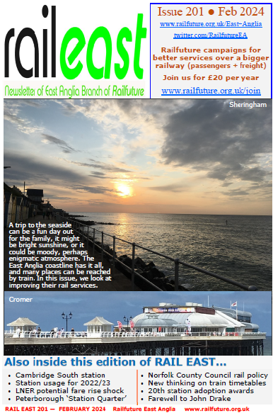 Please see Newsletters for RAIL EAST highlights with descriptions of the content of each issue, click FULL LIST for a link to ecery issue available online and Snippets for the East Anglia branch news e-bulletins dating back to 1999.