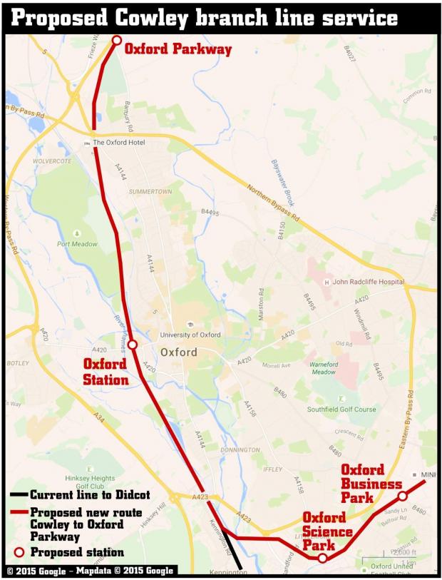 Cowley branch - route from Oxford Parkway via Oxford station (75kB)