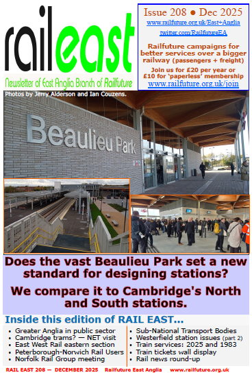 Please see Newsletters for RAIL EAST highlights with descriptions of the content of each issue, click FULL LIST for a link to ecery issue available online and Snippets for the East Anglia branch news e-bulletins dating back to 1999.
