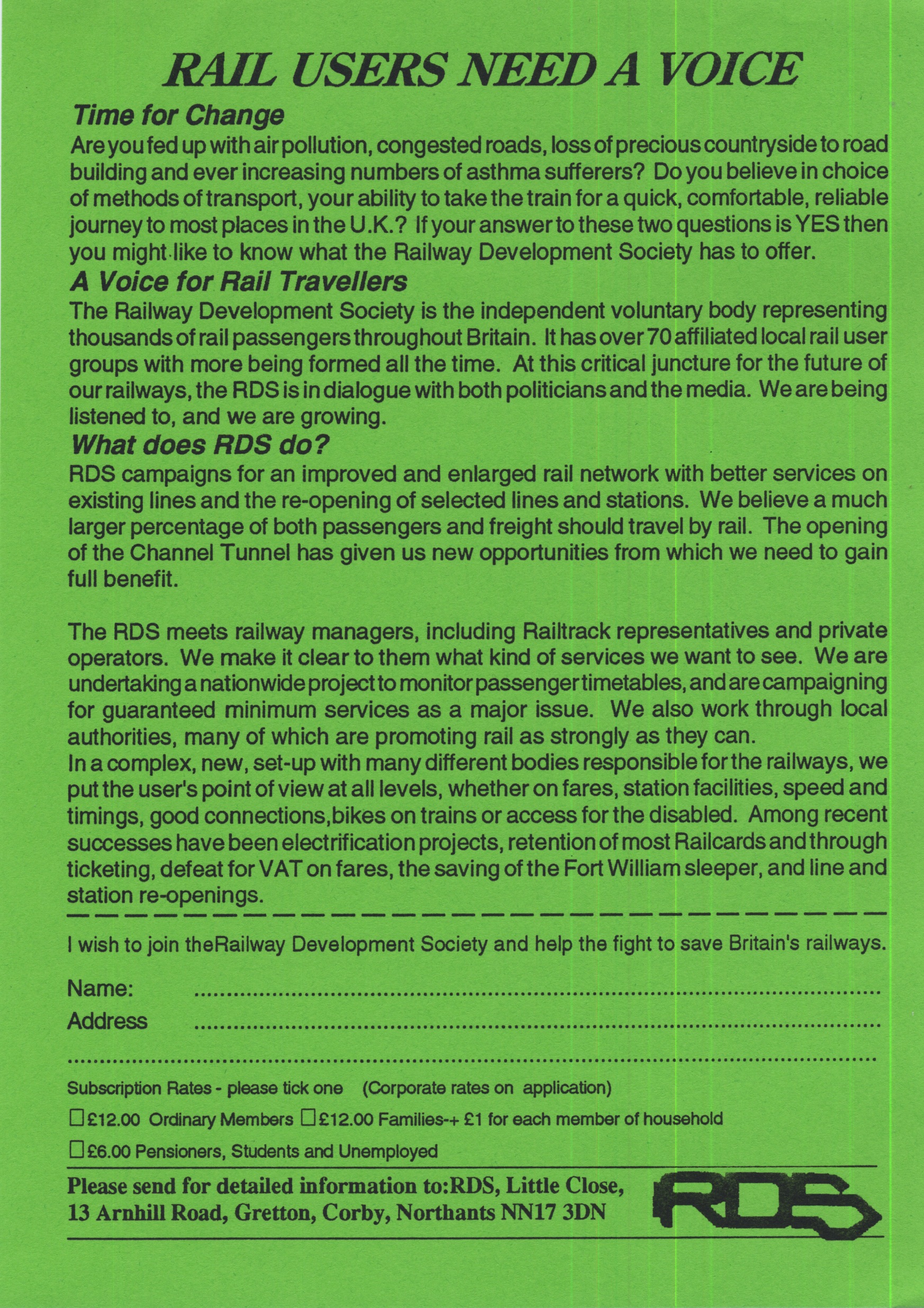 CAUTION: Older documents may no longer reflect Railfuture's current policies. Contact details may also be out of date: please always get latest details from www.railfuture.org.uk/Contact+Us.