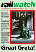 24-page all-colour glossy magazine. Profile of Greta Thunberg; rail is a winner in the environmental stakes; joys (and pitfalls) of family travel by rail; integrated rail-air ticketing Published in July 2019