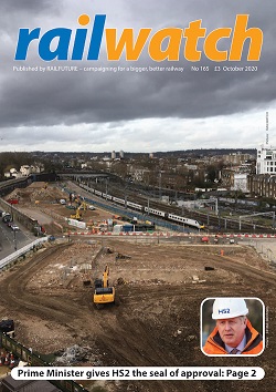 24-page all-colour glossy magazine. PM's seal of apprvoal for HS2; challenge to attract passengers back after COVID-19; LNER's MD writes for Railwatch; rail transport for new towns Published in October 2020